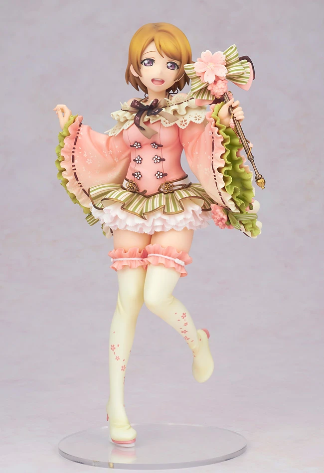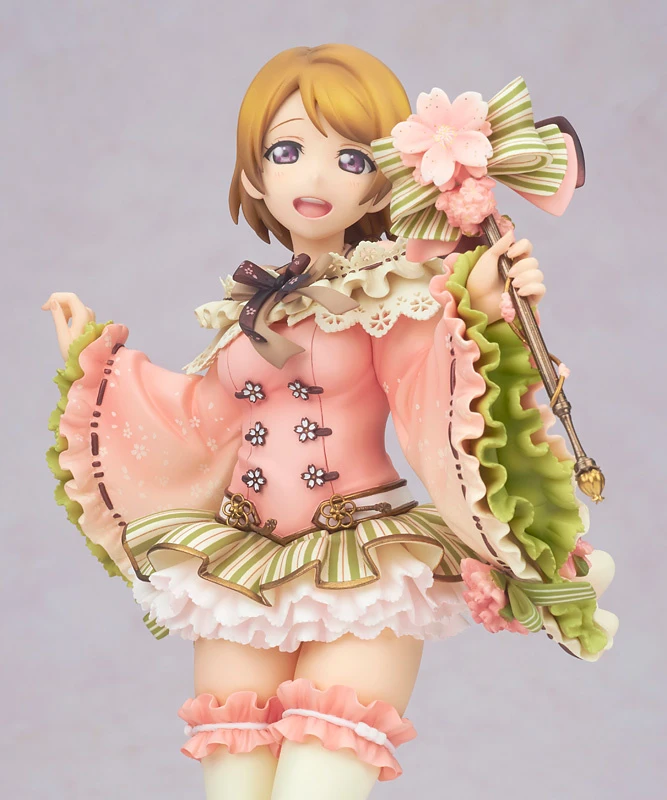 Made by Alter and sculpted by Takafumi Tobita, Hanayo is non-articulated and has a height of 8.7” at 1/7th scale. Her overjoyed expression and spring-themed outfit complement each other with perfection. A beautiful mix of sakura blossoms, romantic pastels, lofty ruffles, and an ornate wand give her the appearance of fairy royalty~