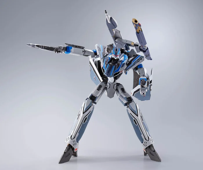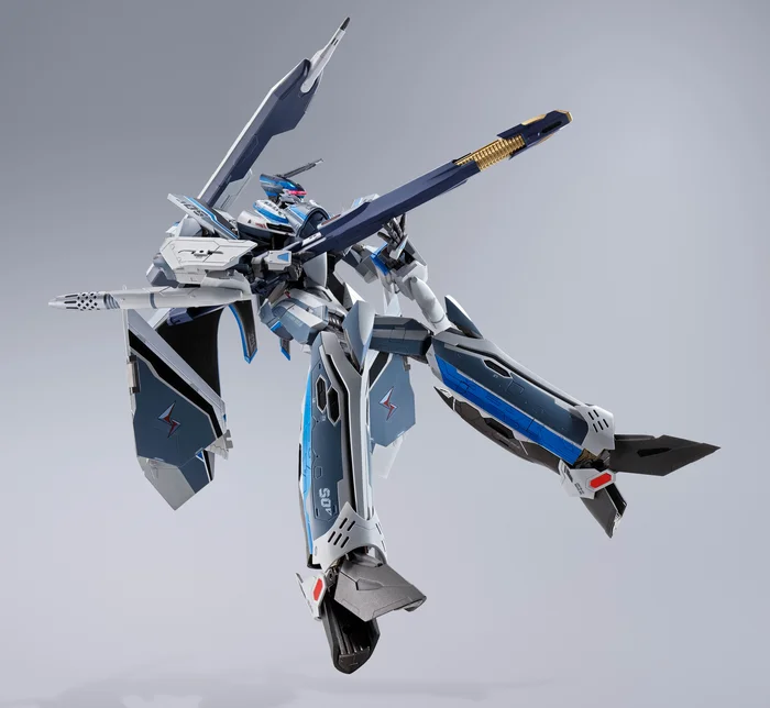 Make way for a thrilling new DX Chogokin figure from the highly exclamatory film, Macross Delta the Movie: Absolute Live!!!!!! Made with diecast, PVCm and ABS parts, this figure of the VF-31AX Kairos-Plus comes in Hayate Immelmann’s colors and is fully articulated. Measuring 10.2″ tall in Battroid mode, it can transform between all three modes, increasing its display potential! The set includes combat knives, optional hands, a Hayate Immelmann figure and a gunpod!