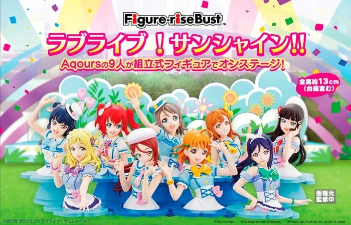 Show off your love for the Love Live! Sunshine!! idol unit Aqours with this gorgeous Figure-rise bust from Bandai! At a height of 5.1”, it’s tall enough to appreciate all of the details, but small enough that it’s easy to find a perfect spot for display. It includes the figure, background plate, stage decoration plate, display stand, 6 runners, a sticker, and an instruction manual.