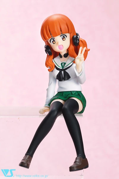 This cheerful looking lady is Saori Takebe, the talkative radio operator of the Anglerfish team in the much loved Girls Und Panzer series in which high school girls compete against each other in the exciting sport of tank warfare! With her distinctive long red hair and radio headphones around her ears, Saori comes dressed in her regular school uniform of a green skirt and white blouse with green highlights. Sitting happily and making the peace sign, Saori is a beautiful addition to any collection just on her own but she really shines alongside her Anglerfish teammates, why not bring some of the other girls home with you too for an unbeatable combination?