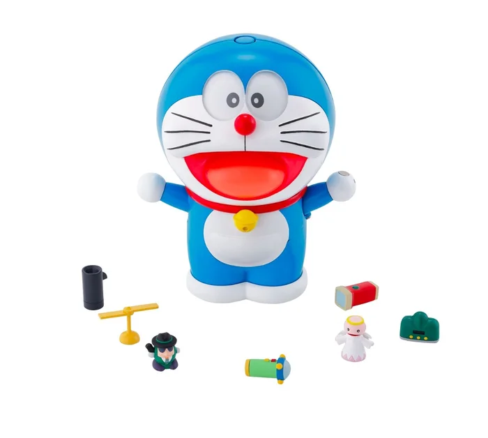 Bandai gives Doraemon a few more gimmicks to play with in this cute Chogokin Guru-Guru figure! Doraemon’s magic hands are now even more powerful – pull on his right paw to change the expression of his eyes or attach some of his famous tools to the left one. Standing 4.9” tall, Doraemon comes with eight different gadgets including the Take-copter which you can remove from his head.