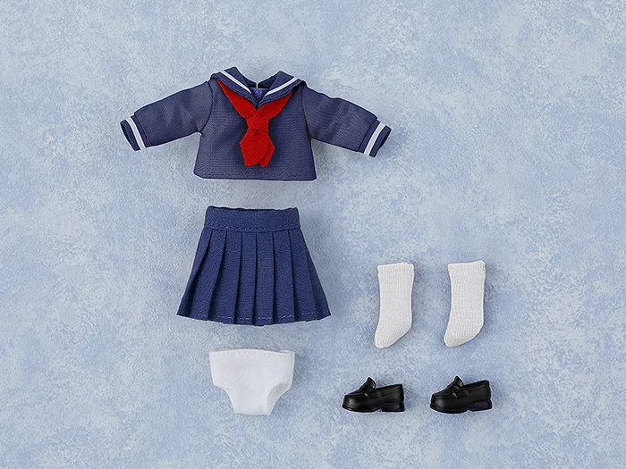 Introducing a cute sailor-style school outfit for your Nendoroid Dolls! From Good Smile Company, the classic Japanese long-sleeved sailor schoolgirl outfit has been recreated as a fun dress-up set that is available in two colors and includes a top with a sailor collar and ribbon tie, a pleated skirt, underwear, socks, and loafers with magnetic soles. Enjoy recreating fun school scenes with your Nendoroid Dolls!