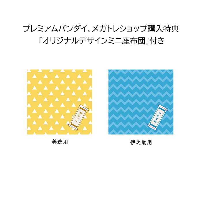 From MegaHouse comes this Look Up Series figure set of Zenitsu Agatsuma and Inosuke Hashibira from Demon Slayer: Kimetsu no Yaiba. Each measures 4.3″ and depicts the character as a cute chibi sitting down and adorably looking up at you with big round eyes. Two mini Japanese cushions are also included to display them on. They are also fun to take foodie pics with as if they are asking you to please share your noms with them.