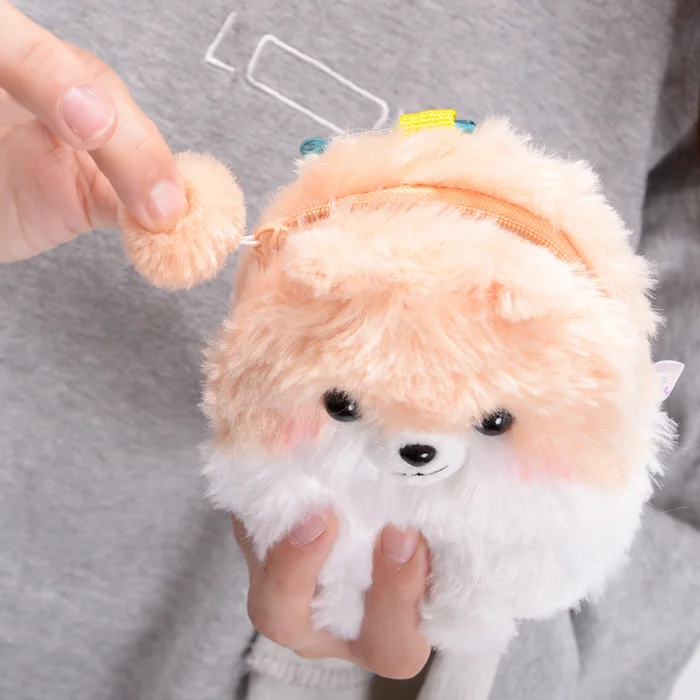 These small pouches are shaped like a backpack and feature a print of Pometan in various poses on the inside. To take them for a walk, all you have to do is latch them on your bag or belt loop with the carabiner on their back~